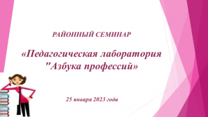 25 января 2023 года на базе ГБУ ИМЦ Выборгского района прошел районный семинар «Педагогическая лаборатория «Азбука профессий». Мероприятие проходило в рамках образовательного трека, направленного на совершенствование профессионально-педагогических компетенций. Цель мероприятия- выявление эффективных стратегий, методов и технологий в области профориентационной работы с детьми в дошкольных образовательных учреждениях. В ходе мероприятия педагоги познакомились с опытом работы педагогов ДОО в рамках сетевого взаимодействия «Ранняя профориентация как форма выявления, поддержки и сопровождения способных и талантливых детей».